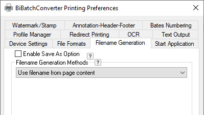 By using the Use filename from page content feature, the file name of the created output file can be specified. To specify the file name add the Filename tag to the first page of the document.