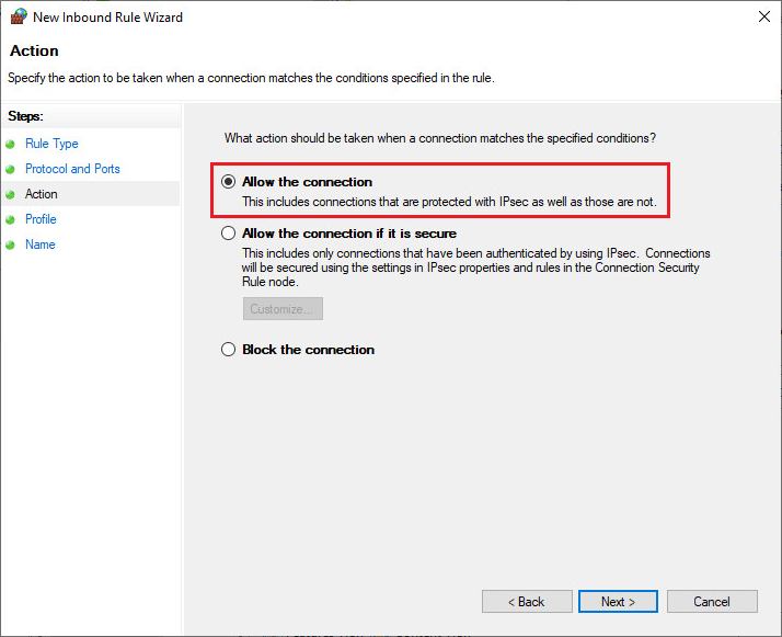 Select Allow the connection and click on the Next button.