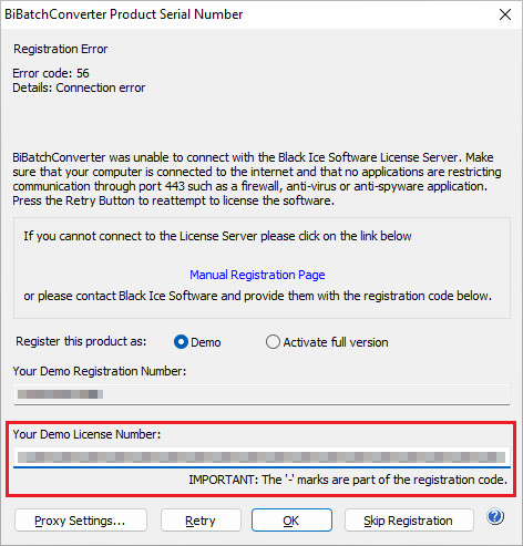 Please copy and paste the received Demo License Number to the Your Demo License Number field on the registration window.