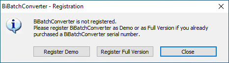 Manually registering the BiBatchConverter Server Demo version