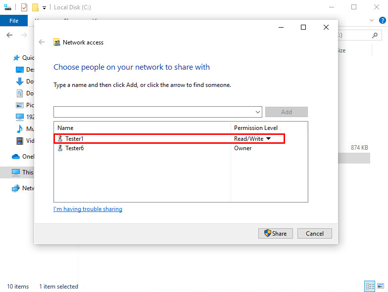 When sharing the directory over the network, add read/write access to the Domain User, who will be used to access the directory from BiBatchConverter Service Manager computer.