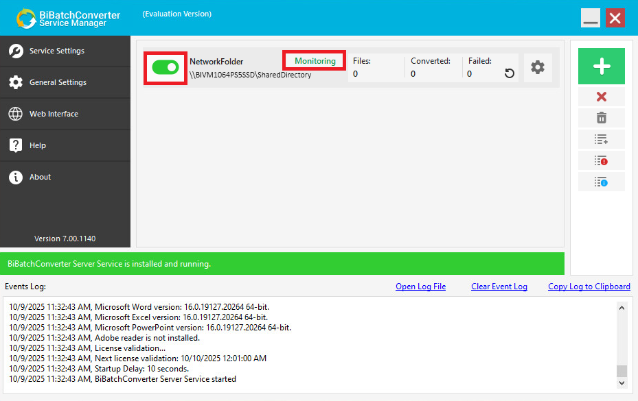 After the BiBatchConverter Server Service is installed, please click the Start Service button to run the service.