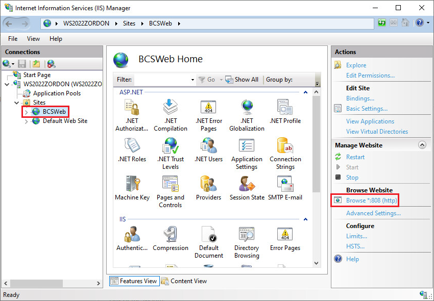Under the Sites menu, check if the website has been added and started. If there is no stop sign in the website icon under Sites, the website is running.