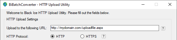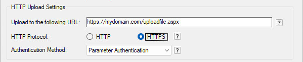 To specify which protocol the webpage is using (HTTP or HTTPS), type the protocol in front of the web address, (http://www.mydomain.com/upload.php or https://www.mydomain.com/upload.php) or select the appropriate radio button on the user interface.