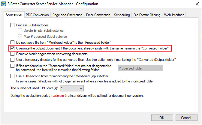 Check the “Overwrite output document if the document already exists with the same name in the “Converted Folder”” checkbox and click OK