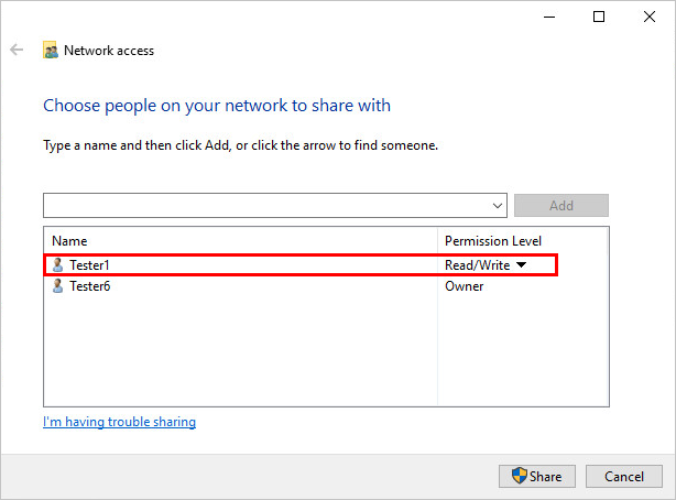 When sharing the directory over the network, add read/write access to the Domain User, who will access the directory from the computer where the FileFlow Service is executed. The FileFlow Service can run under a domain or local Administrator account or under the User account. To run the FileFlow Service under a domain user account, please refer to the Using a Domain User for Shared Network Directory Monitoring section for further instructions.
