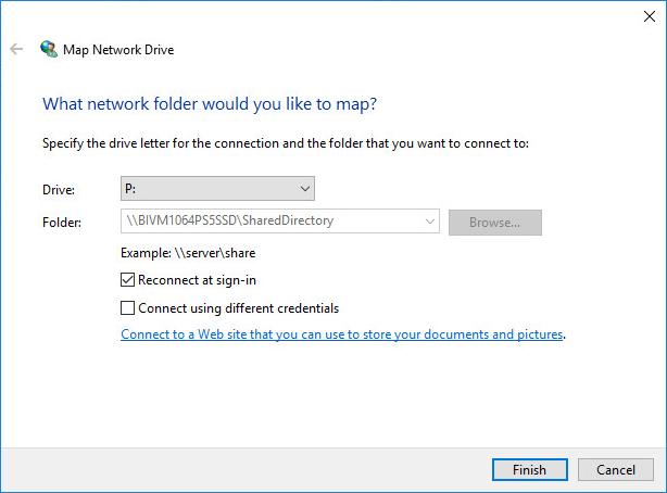 Open Windows File Explorer, and access the Computer on the network, by entering the Computer Name, for example: \\BIVM1064PS5SSD\SharedDirectory