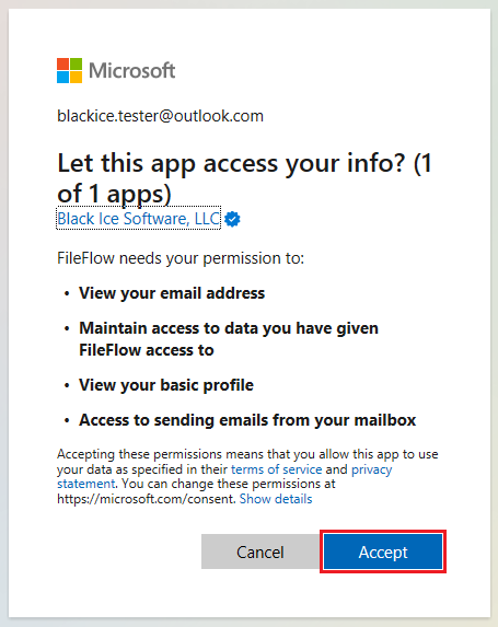 On the next screen, please accept the permissions, and click on the Accept button to continue.