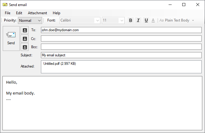 When finished, click on the Apply button to save the changes. From now on, every document printed to the Print2Email printer driver will be opened in the Print2Email Email Sender to let users send the printed documents in email quickly and easily using the configured SMTP Server.