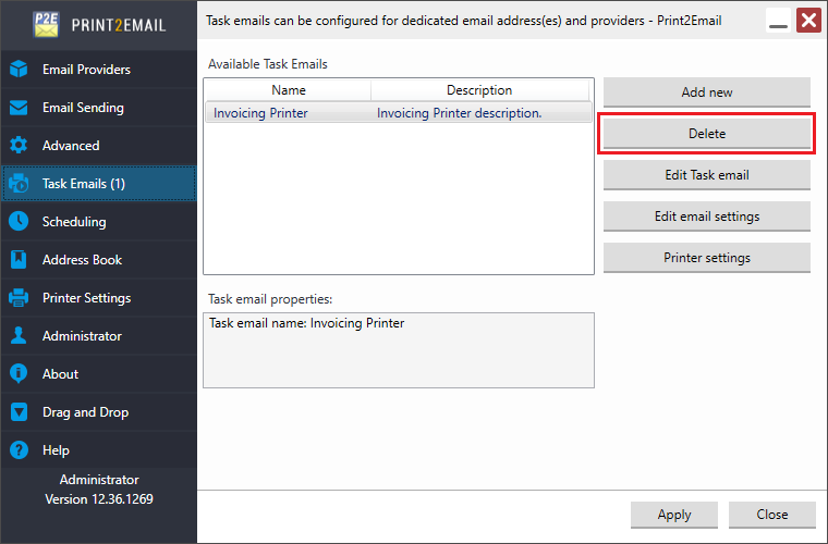 NOTE: When uninstalling the base Print2Email, all corresponding Task Emails are deleted.