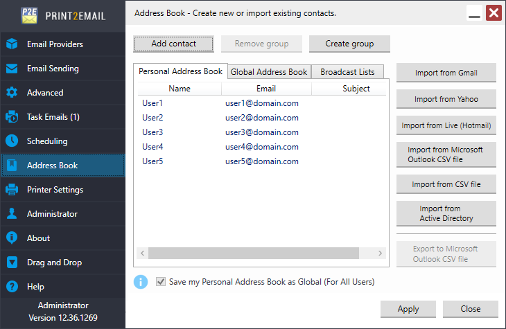 When the importing process is complete, the contacts will be available in the Personal Address Book.