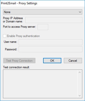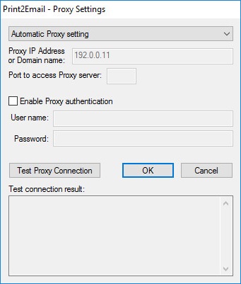 If the Proxy server is using user authentication, the Proxy authentication checkbox must be checked and the User name and Password must be specified.