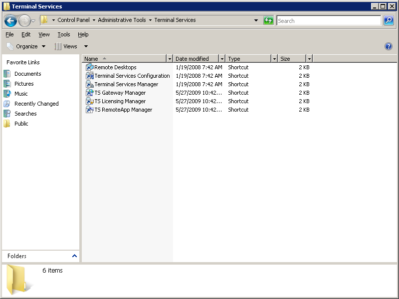 1. Open the Control Panel > Administrative Tools and select Terminal Services.