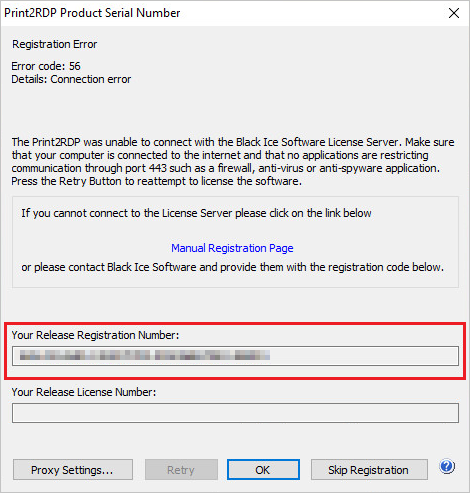 To Register/Activate the Print2RDP a secure Internet connection is required to the Black Ice Software License Server through (HTTPS) port 443.