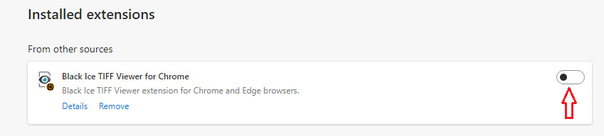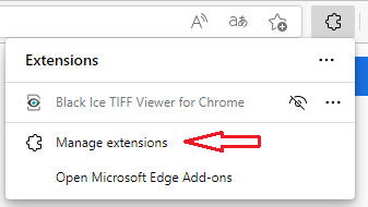 To disable the Tiff Viewer Chrome extension in Microsoft Edge, please go to Settings and more > Extensions: