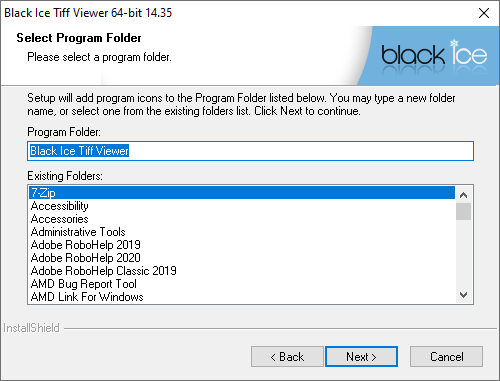 5. Specify the desired name for the Tiff Viewer to appear as under Start > Programs, or use the default setting according to the following screen.
