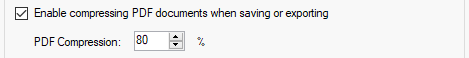 The quality of the compression depends on the PDF Compression value. The lower the PDF Compression value is, the more compressed the generated PDF will be.