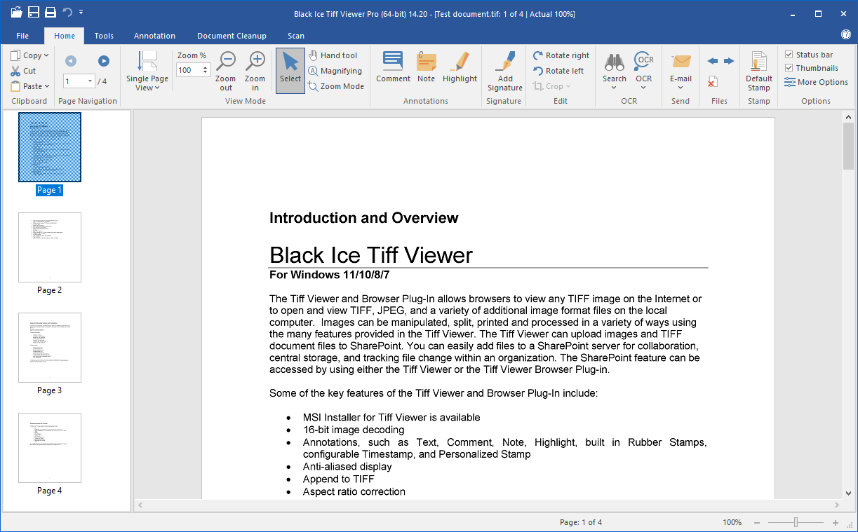 The TIFF Viewer application can be started from the Start Menu > Black Ice TIFF Viewer > Black Ice TIFF Viewer, or by clicking on the desktop shortcut. The features of this application can be accessed in one of two ways: through the menu or by using the icons located in the toolbar below the menu at the top of the application screen.