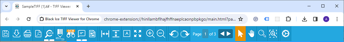 In TIFF Viewer Browser Extension one can utilize the buttons provided on the top toolbar of the extension: