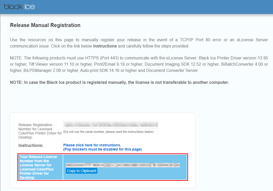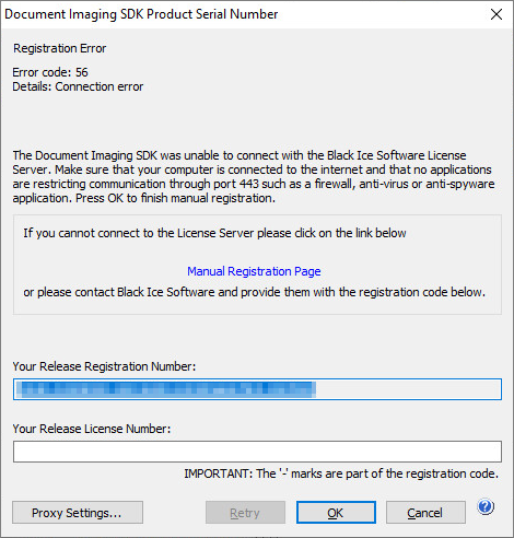 Alternatively, the user can contact Black Ice Software via sales@blackice.com or via telephone with the number displayed in the Your Release Registration Number: field. Black Ice Software provides a Release License string via email to paste into the Your Release License Number (from the reseller): field to activate the software.