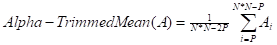 This function will filter the image by the nonlinear alpha-trimmed mean method. This function works for only monochrome, 8 bit per bixel and 24 bit per pixel images. The alpha-timmed mean filter is based on order statistics and varies between a median and a mean filter. It is used when an image contains both short and long tailed types of noise (e.g. both Gaussian and salt and pepper noise). To define the alpha-trimmed mean filter, all pixels surrounding the pixel at the coordinate (x,y) in the image A which are specified by an input N x N size square mask A(i) are ordered from minimum to maximum value. The alpha-trimmed mean filter is given as :