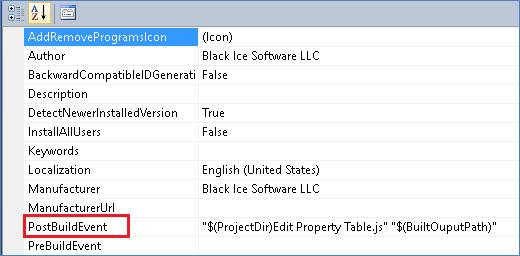 MSI installers use the Edit Property Table.js as PostBuildEvent