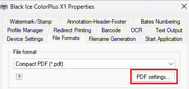 Ensure that the Compact PDF format is selected under the File Formats settings.