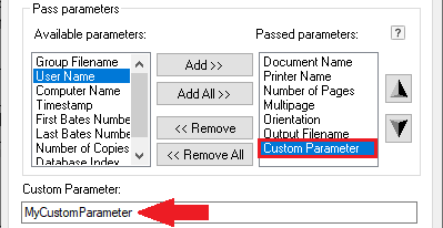 To remove a parameter from the Passed parameters list, select the appropriate parameter and press the Remove button. Click on the Remove All button to remove every parameter.