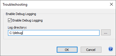 When Debug Logging is enabled, the Printer Driver creates an EDF log file into the specified Log directory on the Troubleshooting window: