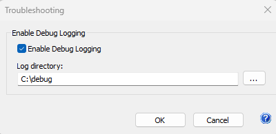 3. Make sure that “Enable Debug Logging” option is checked, and specify the log directory. Click on the “OK” buttons to save the changes.