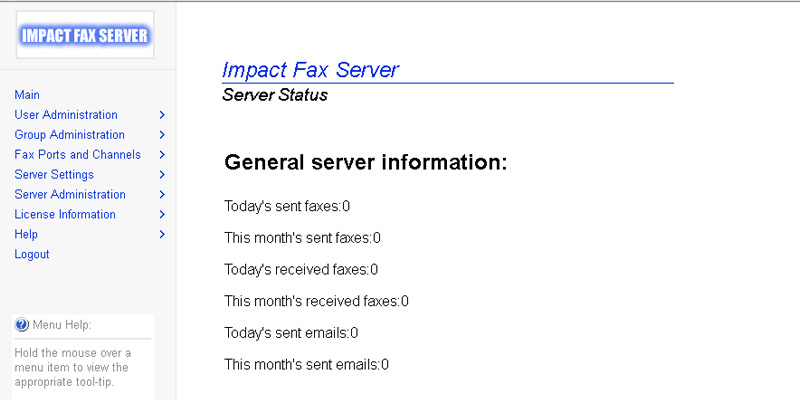 To reach the Impact Fax Server Administrator login, open a web browser and type localhost:1172 as a regular website. Enter the password and press Submit button.The Fax Server Administration page appears. All general information about the server can be found on this Main page.Go to the Server Administration > Fax Queue Information.The Impact Fax Server Fax Queue Information page appears. To delete one fax item check the checkbox under the Check for Deletion column, and press Delete Selected Messages button.The following dialog appears. Click the OK button to delete the selected fax item.To delete every fax item click on the Select All button, and press Delete Selected Messages button.The following dialog appears. Click the OK button to delete every fax item.The empty Fax Queue Information page appears. Thank you for using Impact Fax Server. Click here to see more tutorials.