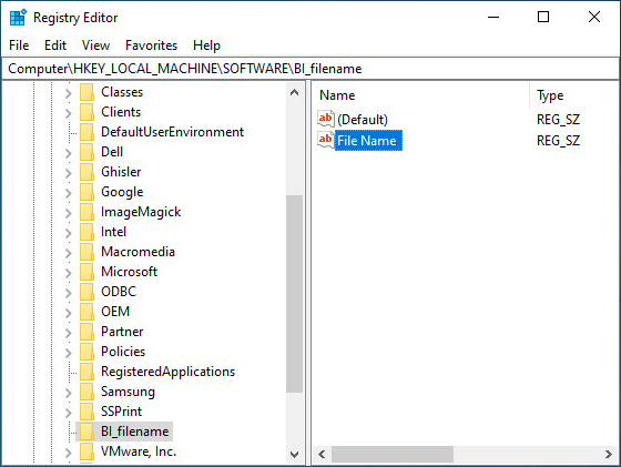 The filename prefix and the extension will be read from the specified registry key. The registry path must be under the HKEY_LOCAL_MACHINE root key. Use the File Name Prefix value for the file prefix and the File Name extension value name for the extension.
