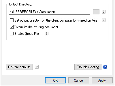 If this option is checked, the driver overwrites the output document if already exist with the same name.