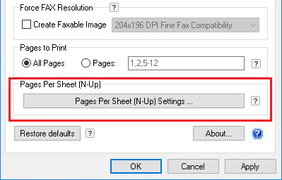 Click on the Pages Per Sheet (N-Up) Settings button to open the N-Up Printing Settings.