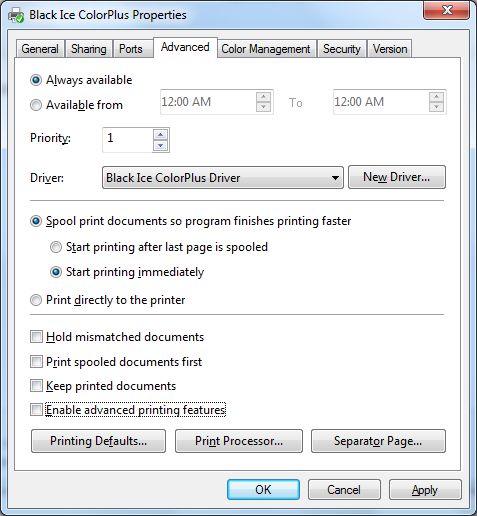 Do the following steps to disable the “Enable advanced printing features” option (Note: These steps were created on Windows 7):