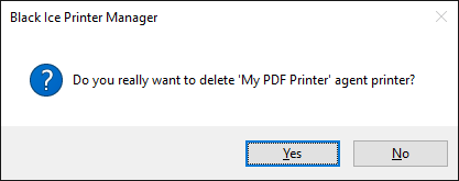 NOTE: When uninstalling the base Black Ice Printer, all corresponding Agent Printers are deleted.