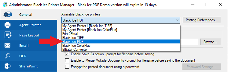 This option appears in all the tabs of the Printer Manager. Select the Printer Driver to be modified from the drop-down menu. Modifications only apply to the selected Printer Driver.