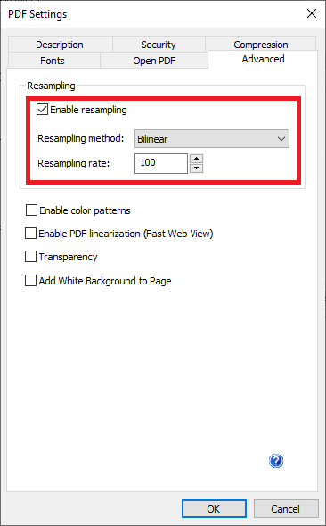 If your document mainly consists of graphics and you do not require selectable text, consider changing the file format to PDF Image under the File Formats tab.