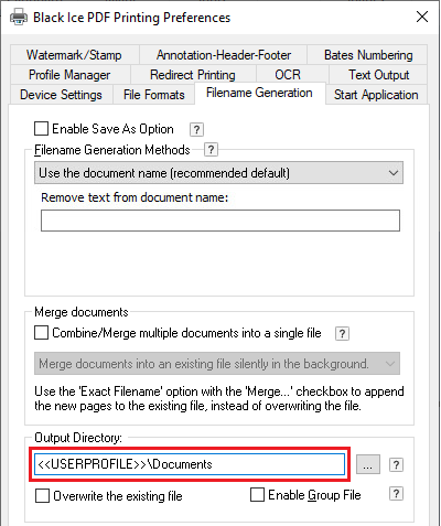 When printing with the Black Ice Printer Driver, the user needs to have write access permission for the configured Output Directory. When the Output directory is configured during installation, the administrator has write access to any folder. The user may not have write access to the folder after installation. The Output directory can be configured for the Printer Driver in the Control Panel > Printers and Devices > right click on the Printer Driver > Printing Preferences > Filename Generation Tab.