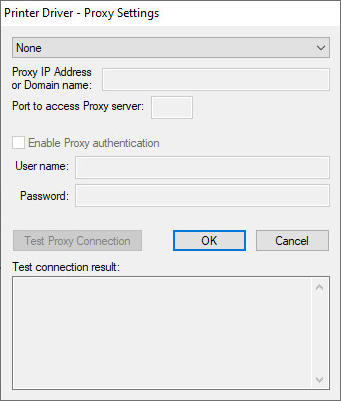 If the Proxy server is using user authentication, the Proxy authentication checkbox must be checked and the User name and Password must be specified.